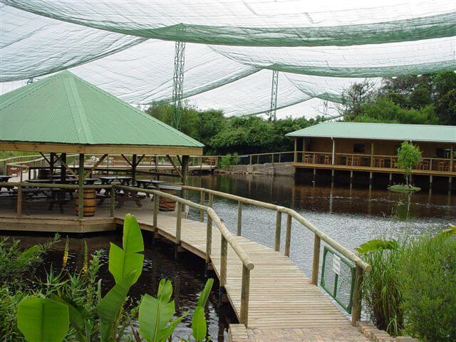 In een hoek naast het huis, is een vogelverblijf gemetseld, afm. 8m lang x 5,50m breed x 2,40m hoog. Eén en ander loopt taps toe. Het geheel is geïsoleerd en van binnen geheel betegeld, zodat de ruimte goed schoon te houden is en voorzien van thermopane beglazing. Aanvankelijk was het de bedoeling dat er enkele vluchtjes zouden komen, echter een lid van de afdeling raadde me dat af. Hij vond dat zonde van de ruimte, omdat vogels boven of beneden verblijven in een volière en dus de ruimte niet zou worden benut. Daarom werd besloten boxen te maken en wel vijf naast en twee boven elkaar. E.e.a. is tot standgekomen zonder schroef en lijmwerk, zodat bij verhuizing alles zo weer uit elkaar kan. De vluchtjes (1 m breed, 90cm diep en 1 m hoog) zijn voorzien van deurtjes van aluminium. Deze kunnen in zijn geheel opendraaien en daarnaast kunnen de voorfrontjes zo uit de profielen gelicht worden. Al met al om schoonmaken te vergemakkelijken. Als wand is geplastificeerd spaanderplaat gebruikt, welke bij de aansluitingen gekit zijn. Onder de deurtjes is een houten dorpel gemaakt, die met magneetsluitingen bevestigd is. Deze dorpel kan weggeklikt worden, waardoor met een schraper de bodembedekking naar buiten geschraapt kan worden. Aan het eind van deze vluchtjes was nog een ruimte van 1.20 meter lengte over. Echter aangezien het hok taps toeliep, kon hier geen vlucht meer komen. Dit is opgelost door hier 4 vluchten boven elkaar te maken (1.20m lang x 40cm diep x 50cm hoog).
